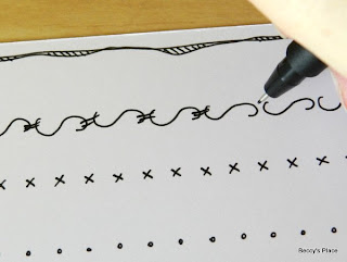 Doodling is also a great way to add borders to your paper craft projects. The single, most important thing to remember about doodling borders is REPETITION. What you draw doesn't have to be perfect, the pattern just has to repeat itself. Let me show you what I mean....