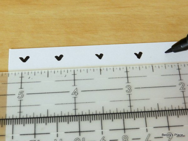 ... then draw a few more. I use a ruler to keep my hearts evenly spaced. Don't actually push your pen up against the side of the ruler or your doodling will have a funny flat edge rather than being nice and fluid.