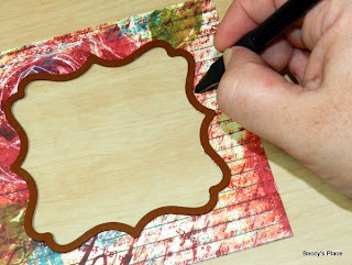 7. Place the die back over the patterned paper and trace around the edge. You will cut this away later to get a lovely border.
