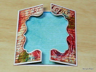 5. Secure a piece of patterned paper on the front of the card over the opening.