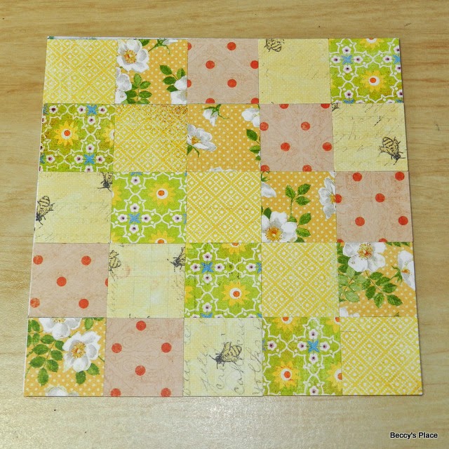 DeleteI used a 1" punch to punch lots of squares from pieces of scrap paper. Then I used double sided tape to adhere them side by side to a 5" x 5" piece of paper. If you don't have a punch, you can use a trimmer or a craft knife and ruler.