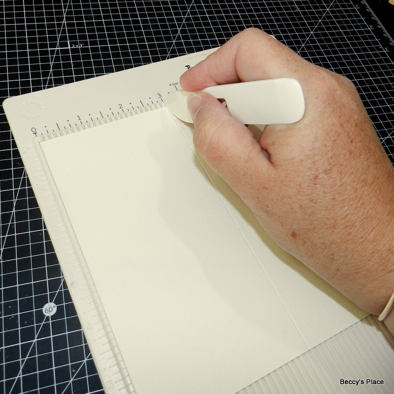 2. Place the card stock on your score board and score at 3". Fold along the score line.